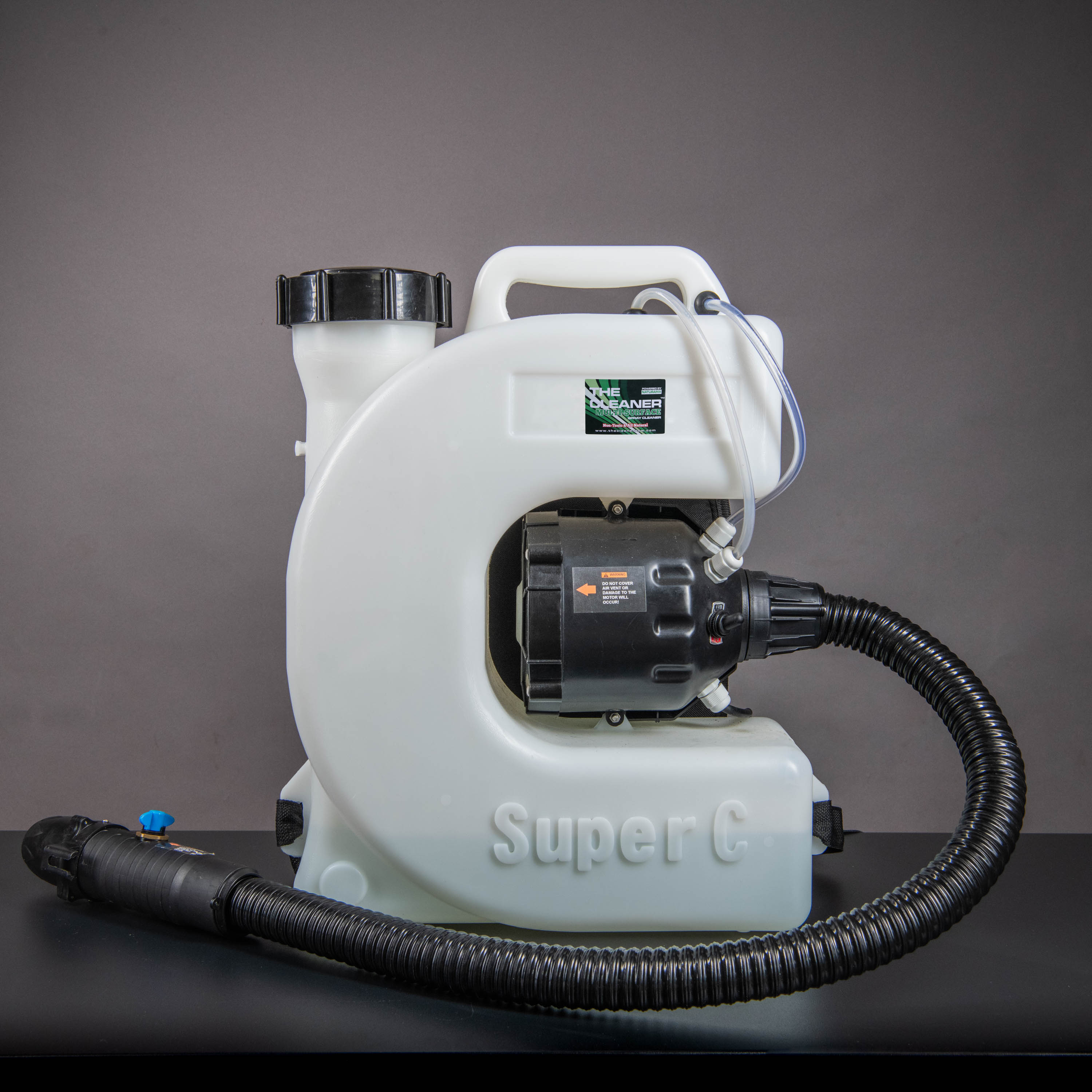 We use an Electric ULV BackPack Fogger Atomizer Sprayer that cleans on contact.